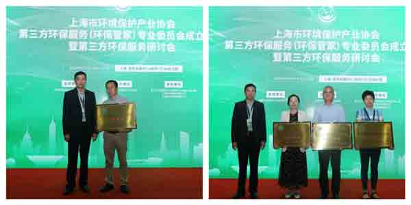 在各位领导、专家及各参会代表的共同见证下,会议举办了第三方环保服务(环保管家)专委会揭牌仪式,随后苏国栋会长为主任单位和副主任单位授牌。