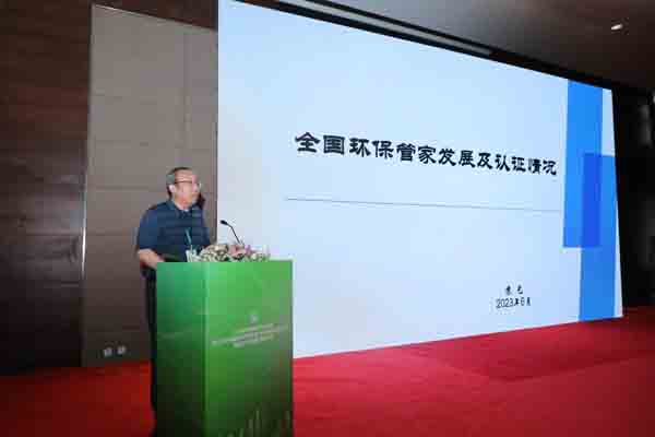 中国环境保护产业协会环评分会秘书长苏艺做“全国环保管家发展及认证概况”的主旨演讲。他对环保管家服务认证的规则进行了深入剖析,对认证流程、认证要求和现场审核要点进行了详细介绍,为服务认证工作提供了指导。