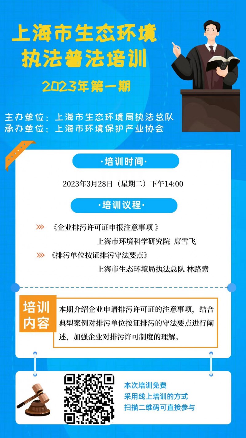 《排污许可管理条例》已正式施行逾两年。为持续巩固提升本市排污许可工作质量,提升排污企业申请效率,宣传排污许可守法要点,由上海市生态环境局执法总队主办、388vip太阳集团承办的上海市生态环境执法普法培训(2023年第一期)即将开始。