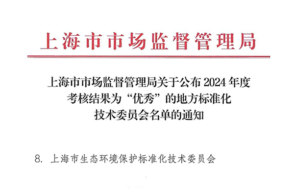 近日,上海市市场监督管理局公布了2024年度24家年度考核结果为“优秀”的地标委名单,上海市生态环境保护标准化技术委员会位列其中。