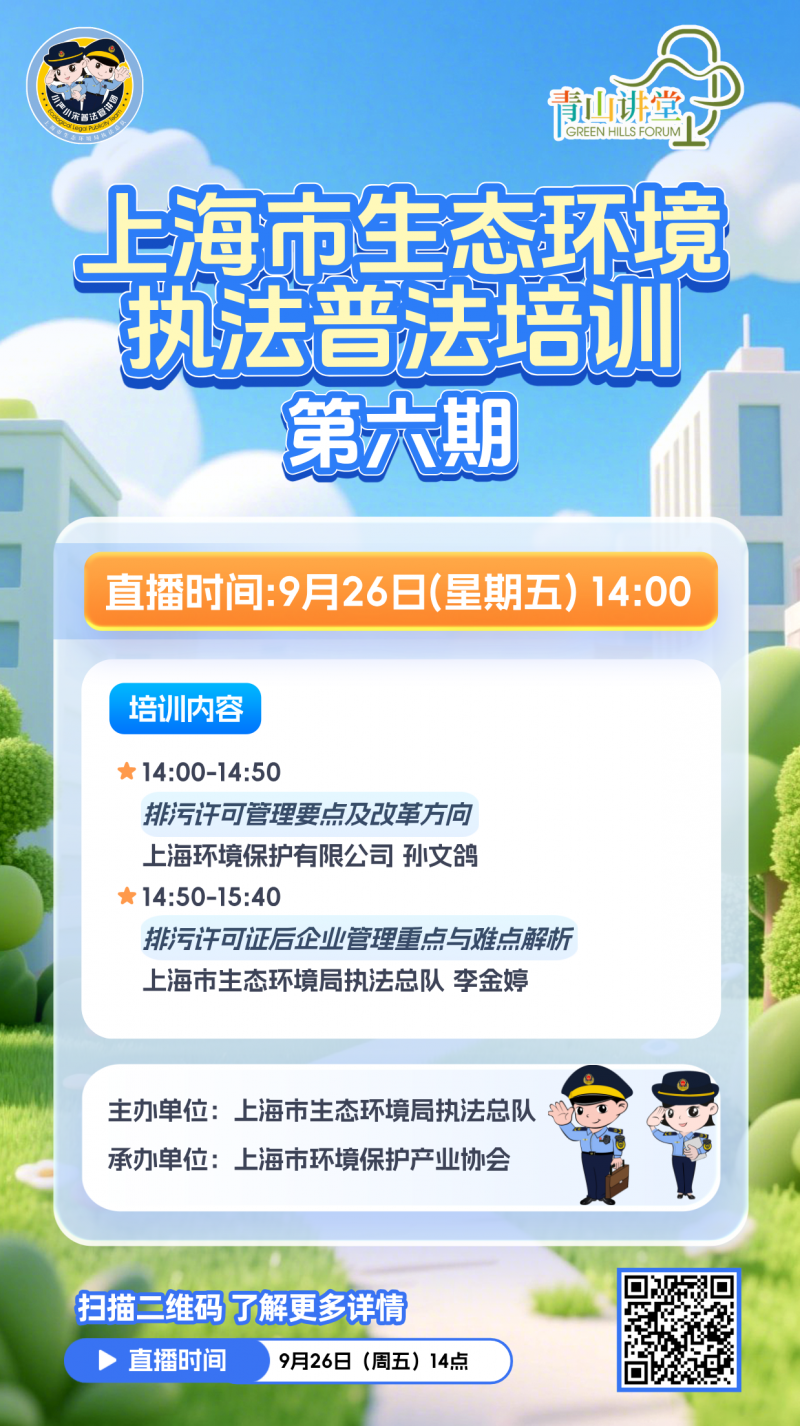 近期,上海市生态环境局制定并印发了《上海市全面实行排污许可制实施方案》。为全面发挥排污许可制度效能,健全以排污许可制为核心的固定污染源监管制度体系,压实企业主体责任,提升我市排污单位守法意识与环保管理水平,支撑深入打好污染防治攻坚战,助力美丽上海建设,由上海市生态环境局执法总队主办、388vip太阳集团承办的2025年第六期生态环境执法普法培训即将开班。