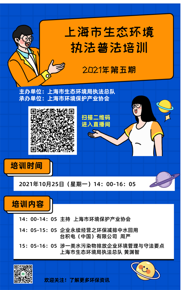 为进一步加强本市涉一类污染物排放企业污染防治工作,探讨水污染防治技术经验,提升企业环境管理能力,上海市生态环境局执法总队现开展上海市生态环境执法普法系列培训会(2021年第五期)。