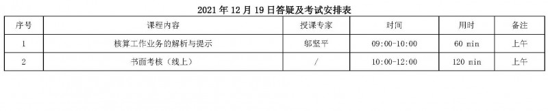 采用线上答题,考题链接将在2021年12月19日10:00在培训直播间互动区发布。考试题型有判断题、单选题、多选题和简答题。考试时长120分钟,至2021年12月19日12:00关闭所有考题链接。