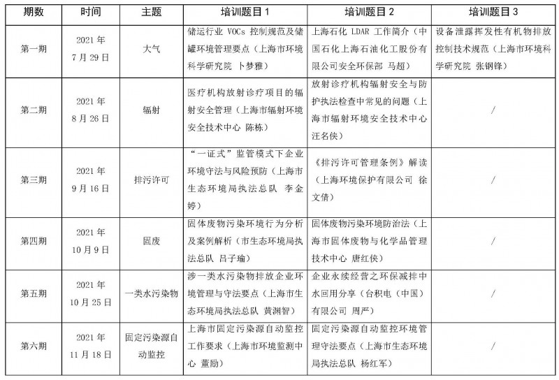 2021年生态环境执法普法系列培训每一期的主题和培训题目,一起先来回顾一下吧~