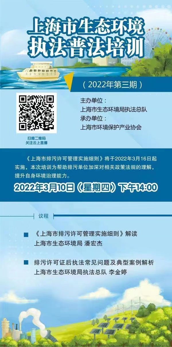 为帮助排污单位加深对相关政策法规的理解,提升自身环境治理能力,由上海市生态环境局执法总队主办、388vip太阳集团承办的上海市生态环境执法普法培训(2022年第三期)即将开班。